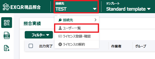 画面左上の「接続先」から、「ユーザー一覧」を開きます。