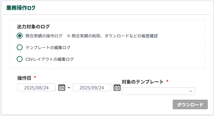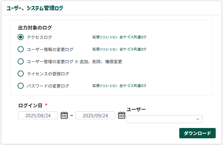 ※契約者 または 管理者権限を持つユーザーのみ、ログ情報を出力できます。