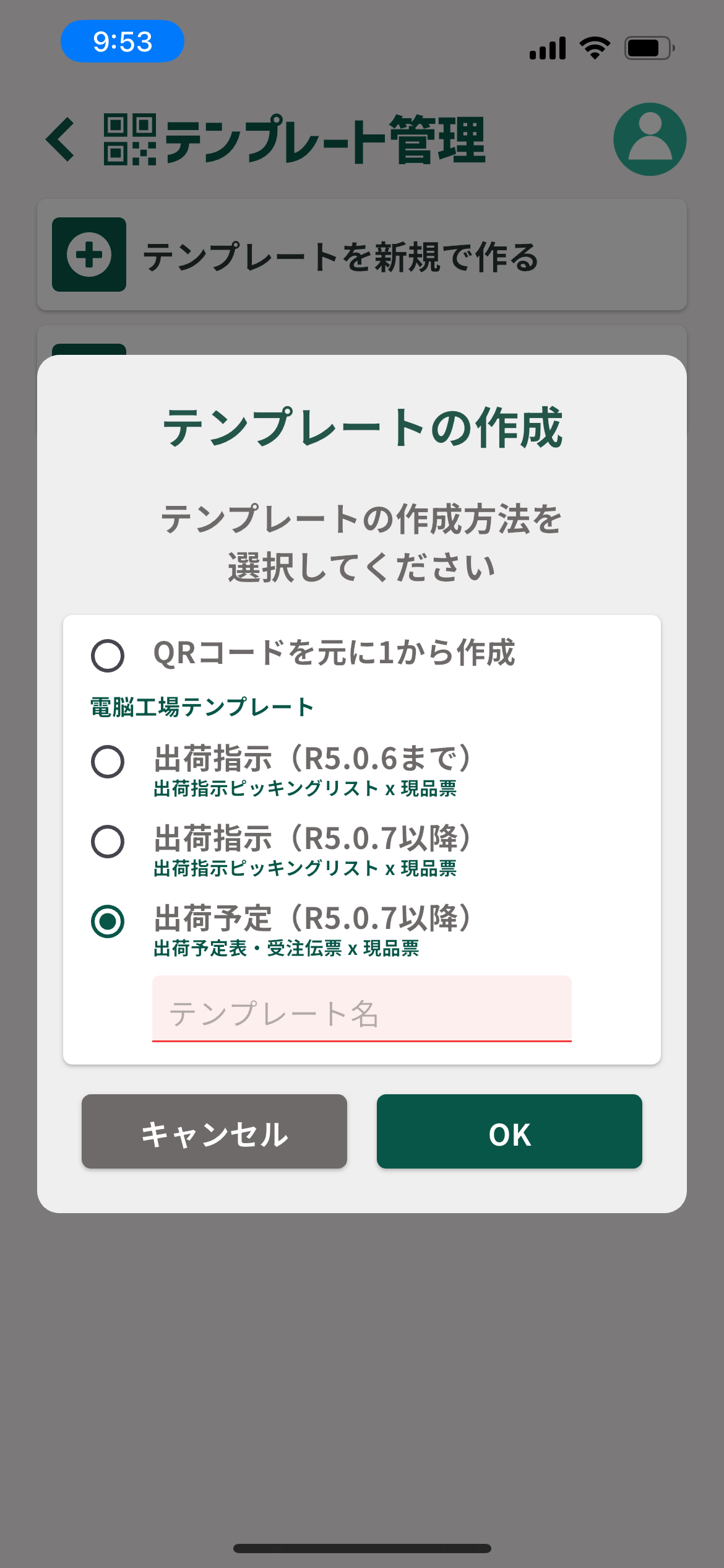 ❸「電脳工場テンプレート」のうち、お使いの電脳工場のバージョンに合わせてテンプレートを選択してください。