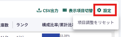 ABC分析欄の右上にある「表示項目切替」ボタンをクリックすると、表示可能項目の一覧が表示されます。