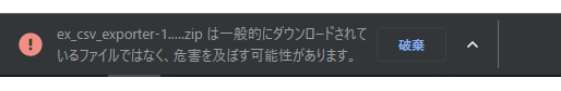 ✕ C:\Users\拡張ソリューション ツール\ex5_csv_sample-x.x.x (←日本語、スペースを含む) - zipファイルのダウンロード時に、警告が表示される場合があります。